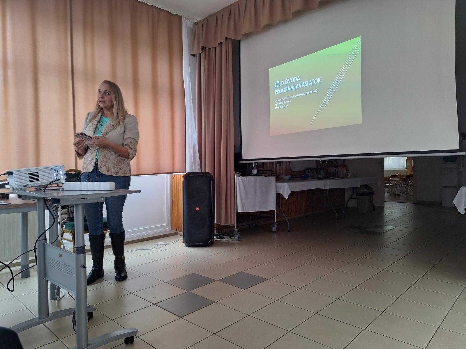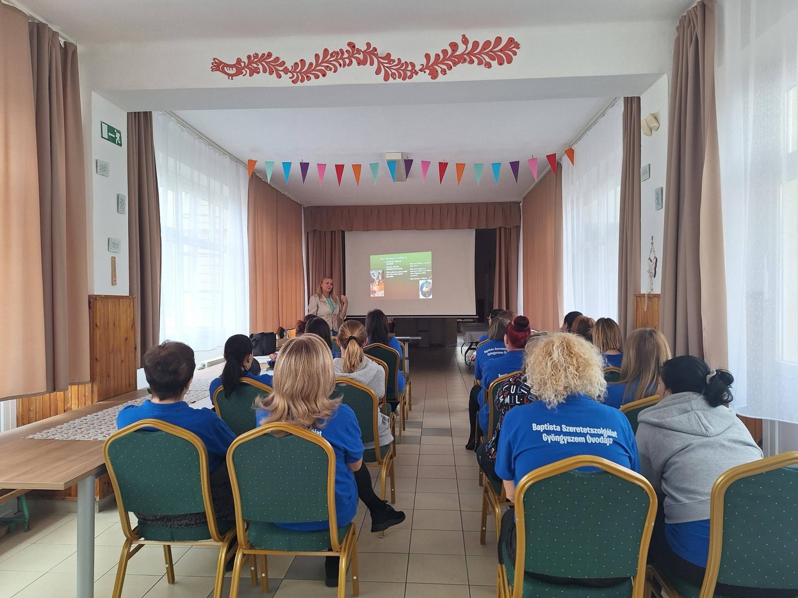 Fantasztikus hangulatban tölthettük ma el szakmai napunkat. Az első előadónk Rajna Beatrix, a Nyíregyházi Egyetem mesteroktatója volt, aki az óvodai mozgásfejlesztés módszertani megújulásait mutatta be nekünk, majd játékos, tevékeny formában ki is próbálhattuk. Ezután Dobróné Dr. Tóth Márta mikrobiológus, főiskolai tanár nyújtott nekünk segítséget Zöld Óvoda programjavaslataival. A napot Pásztorné Fekete Kata óvó néni hangtálas meditációjával zártuk. Köszönjük szépen a szülők együttműködését, hogy megvalósulhatott ez a nap, mert számunkra ezek azok az alkalmak, amikor közösen tanulhatunk, fejlődhetünk!